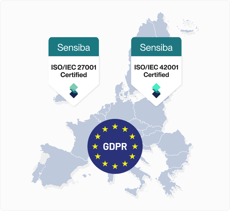 Independently audited to the highest international standards — ISO 27001, ISO 42001, GDPR, EU AI Act.
